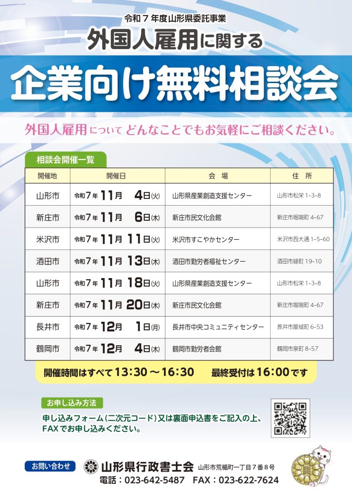 外国人雇用に関する企業向けの相談会となっておりますので、先ずは行政書士にご相談ください。