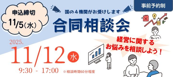 2025年11月12日(水)9:30~17:00 ※相談時間60分間程度